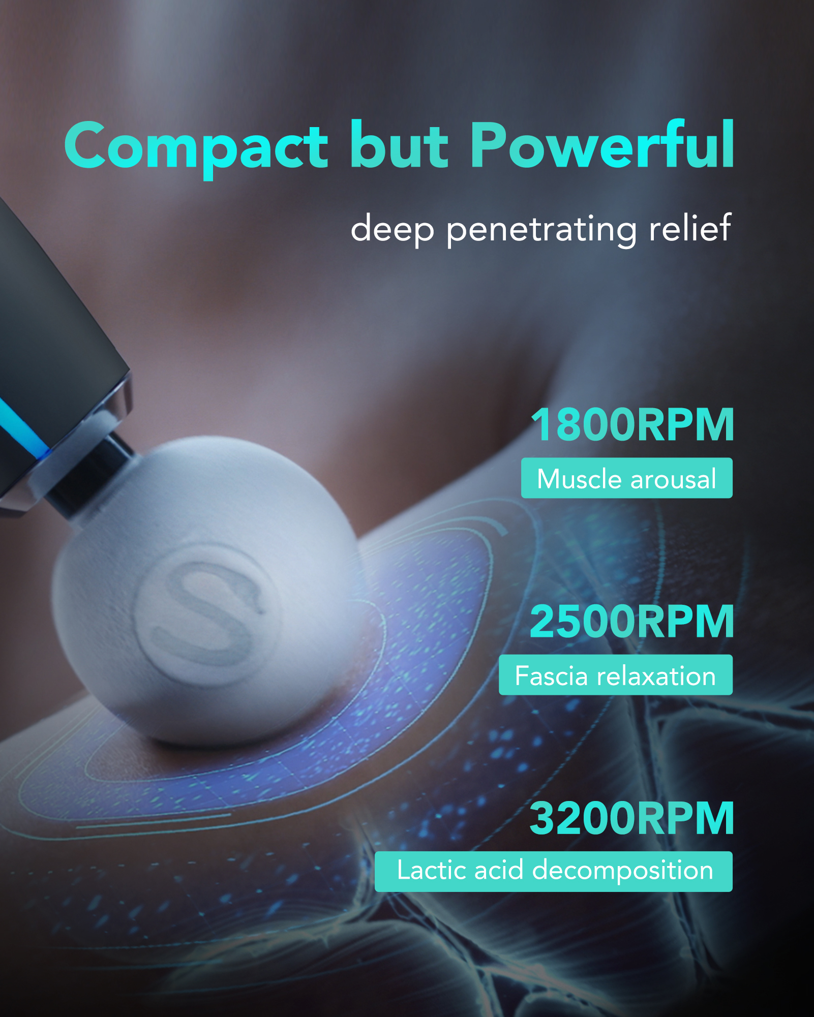 • – Pozwala wybrać poziom intensywności masażu przy jednoczesnym zachowaniu ciszy i komfortu podczas użytkowania. Ma mocny, ale cichy silnik z regulacją intensywności (1800 do 3200 rpm).