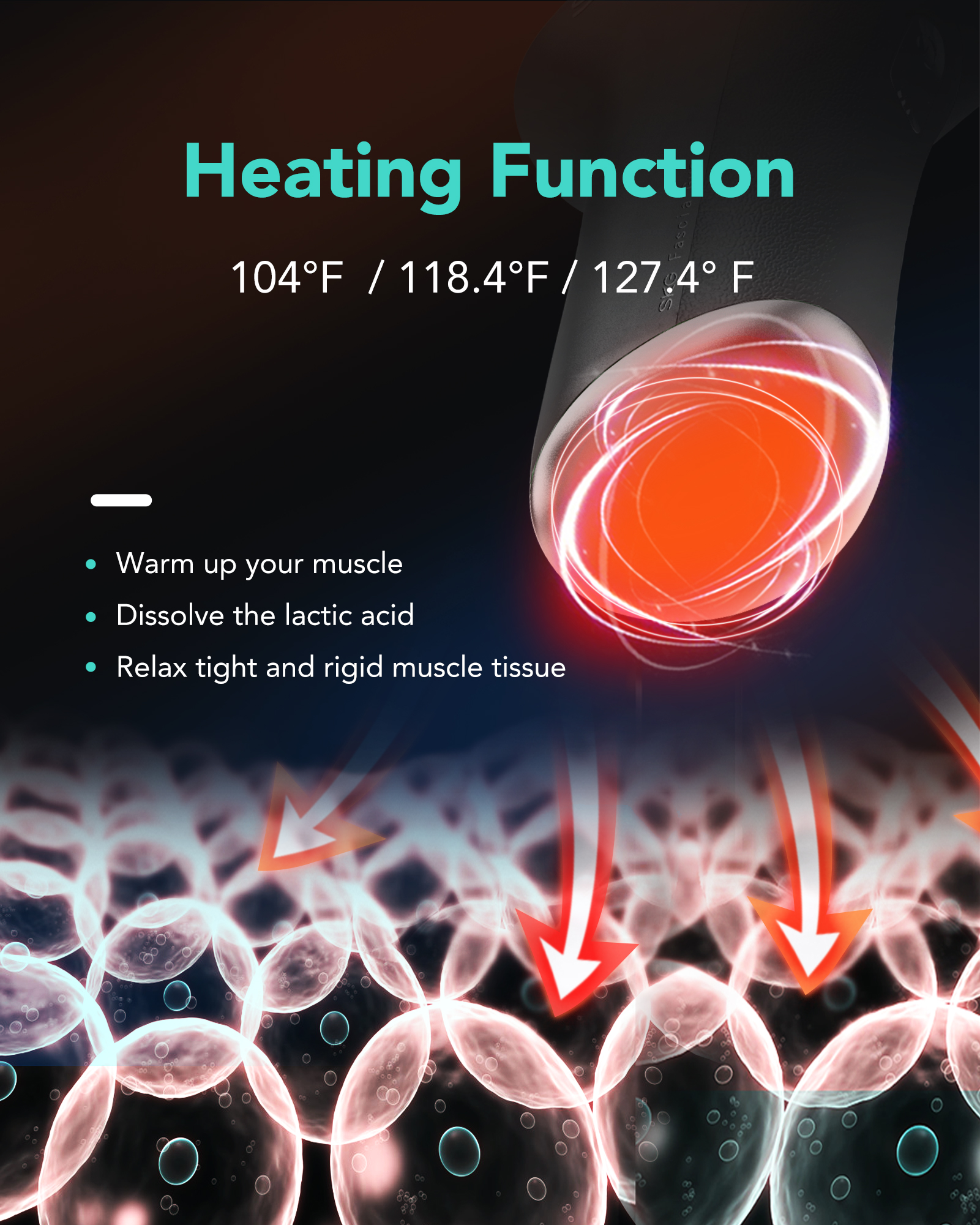 • – Umożliwia wybór odpowiedniego stopnia ciepła dla maksymalnego rozluźnienia mięśni i zwiększenia efektywności masażu. Masażer posiada funkcję gorącego kompresu z 3 poziomami rozgrzewania,